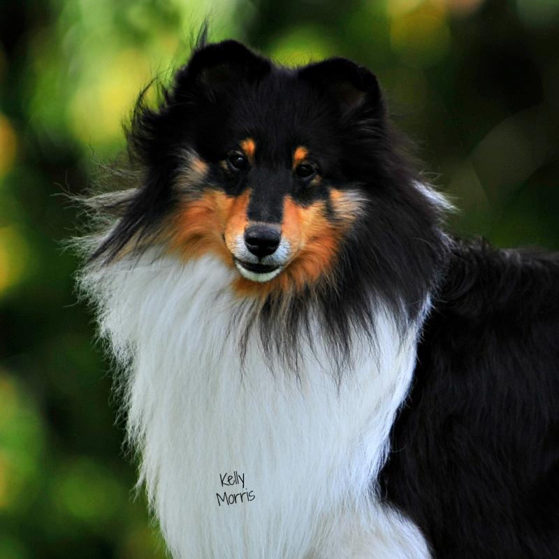 Dexter has a long, profuse dark coat. About fifty percent of his progeny has naturally tipping, ears, all have excellent play drive and interest in herding and agility.